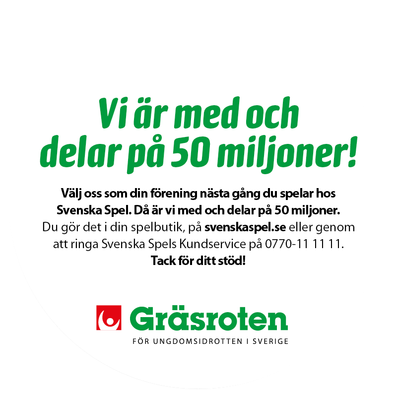 Vår förening är ansluten till Svenska Spels satsning Gräsroten. Det unika med denna satsning är att alla som spelar hos Svenska Spel är med och bestämmer till vilka föreningar pengarna ska gå.
